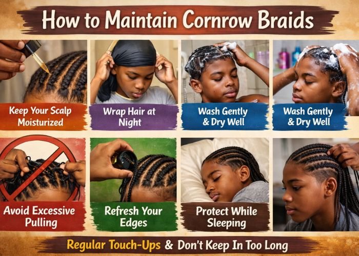 Proper care helps your cornrows stay neat and healthy.