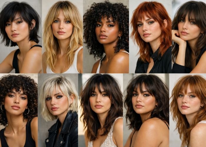 A shag haircut is a layered hairstyle featuring choppy ends, feathered texture, and a slightly messy finish. When combined with bangs, it enhances facial features and adds a youthful, trendy touch.