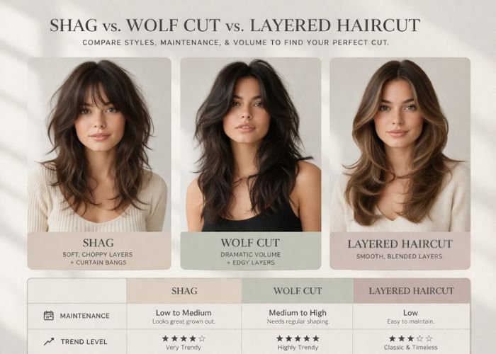 | Feature | Shag Cut | Wolf Cut | Layered Cut |