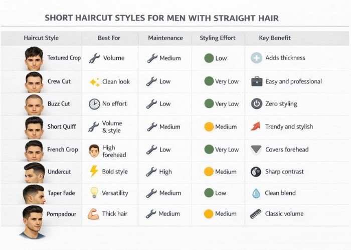 Below are the most stylish and practical short haircut styles for men with straight hair in 2026, including who they suit, how to style them, and why they work.