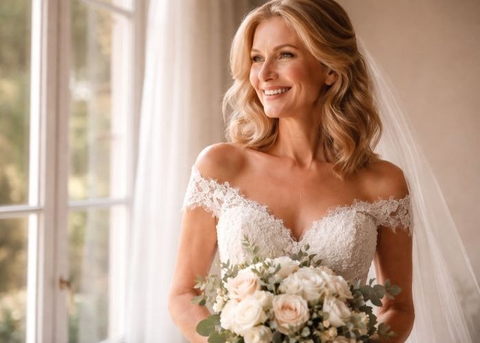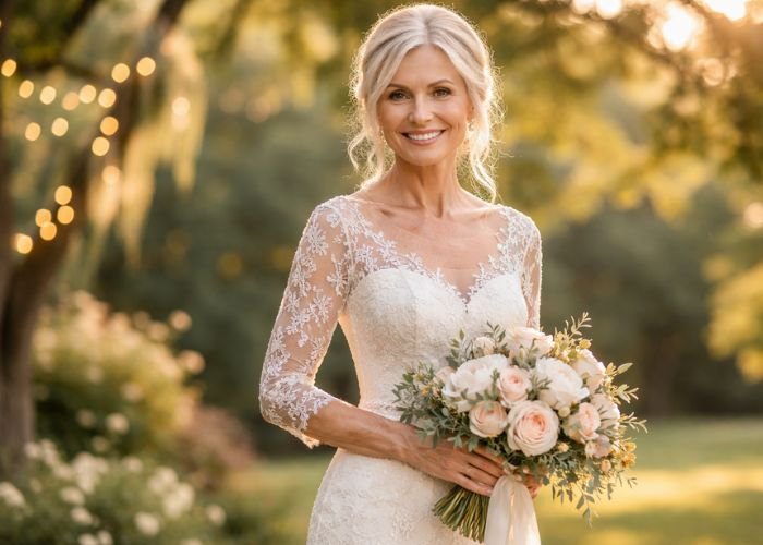 Many brides over 50 prefer comfort-first designs that still look elegant.